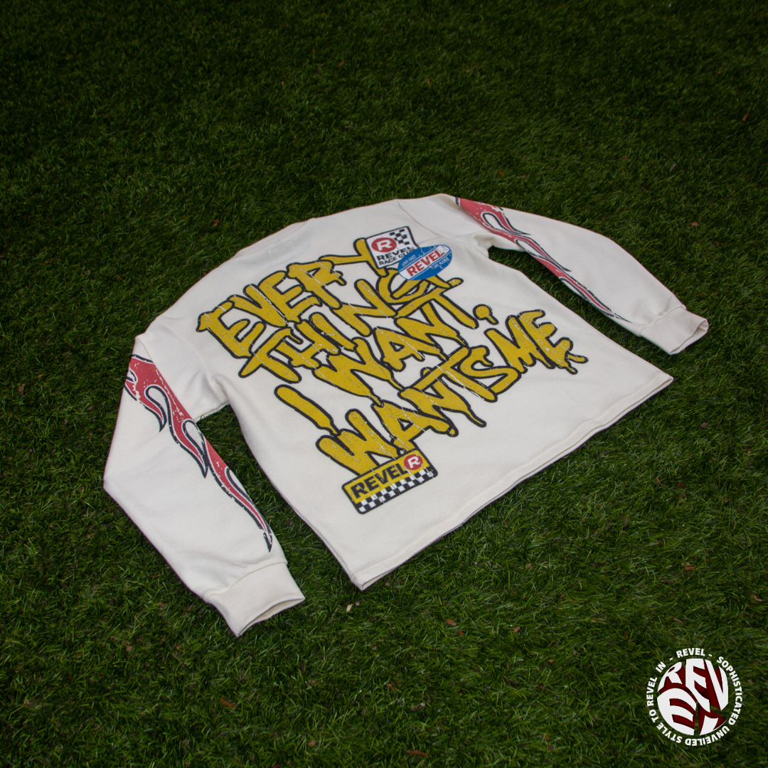 Featuring bold REVEL Racing graphics, flame sleeve detailing, and signature back artwork, this thermal represents speed, ambition, and forward motion. Designed to stand out while remaining versatile, it brings together motorsport energy and modern streetwear.